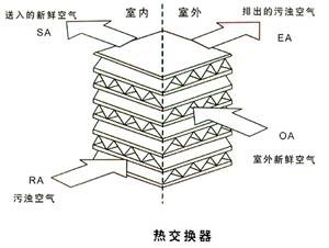 在新風換氣機組上使用的熱交換器有靜止式和旋轉式兩種。轉輪式屬于旋轉式;板翅式和熱管式屬于固定式;轉輪式換熱器熱交換效率高;工作時換熱芯旋轉往復運動。其換熱過程為周期性地吸熱和放熱。優(yōu)點是熱濕的轉移在同一通道完成。傳熱傳質(zhì)熱阻濕阻小。